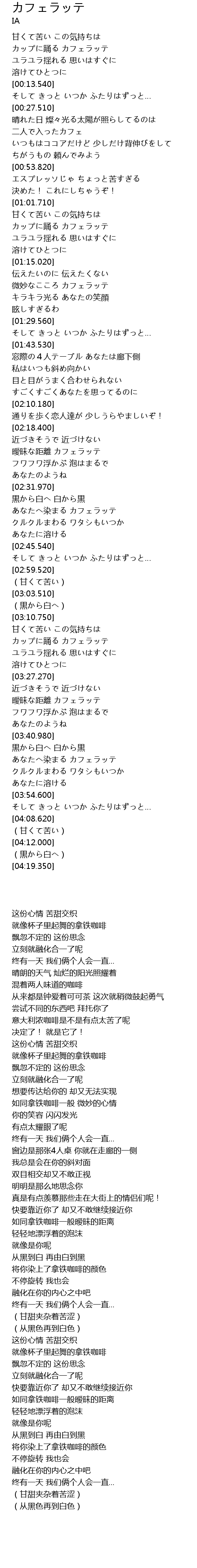 | [02:22.260] | 曖昧な距離 カフェラッテ |