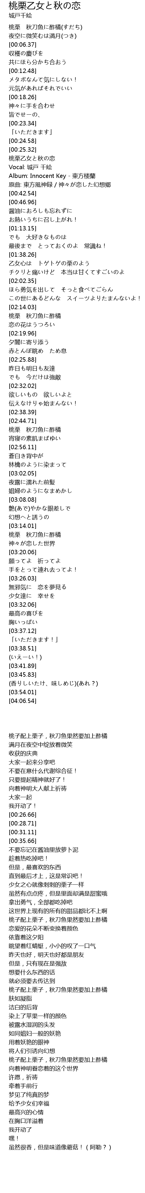 | [00:26.66] | 桃栗乙女と秋の恋 |