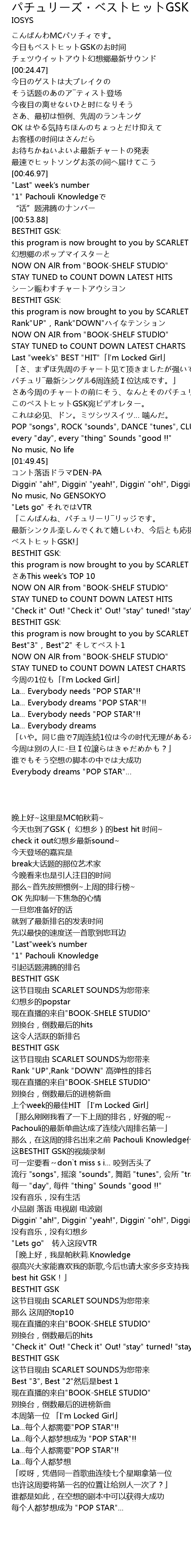 | [00:42.26] | お待ちかねいよいよ最新チャートの発表 |