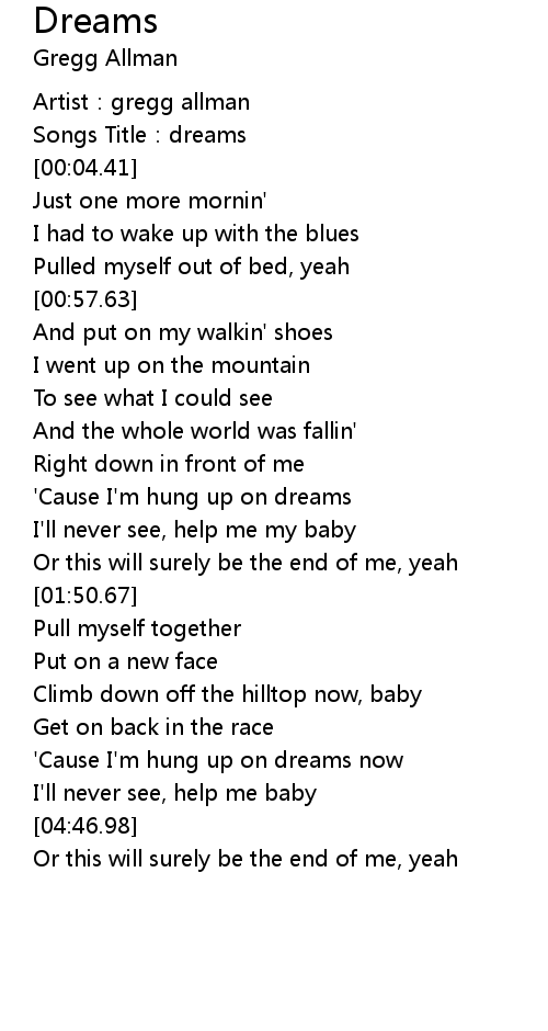 | [00:02.92] | Songs Title: dreams |