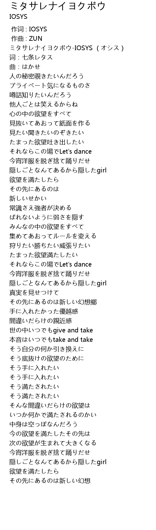 | [00:00.00] | ミタサレナイヨクボウ-IOSYS (オシス) |