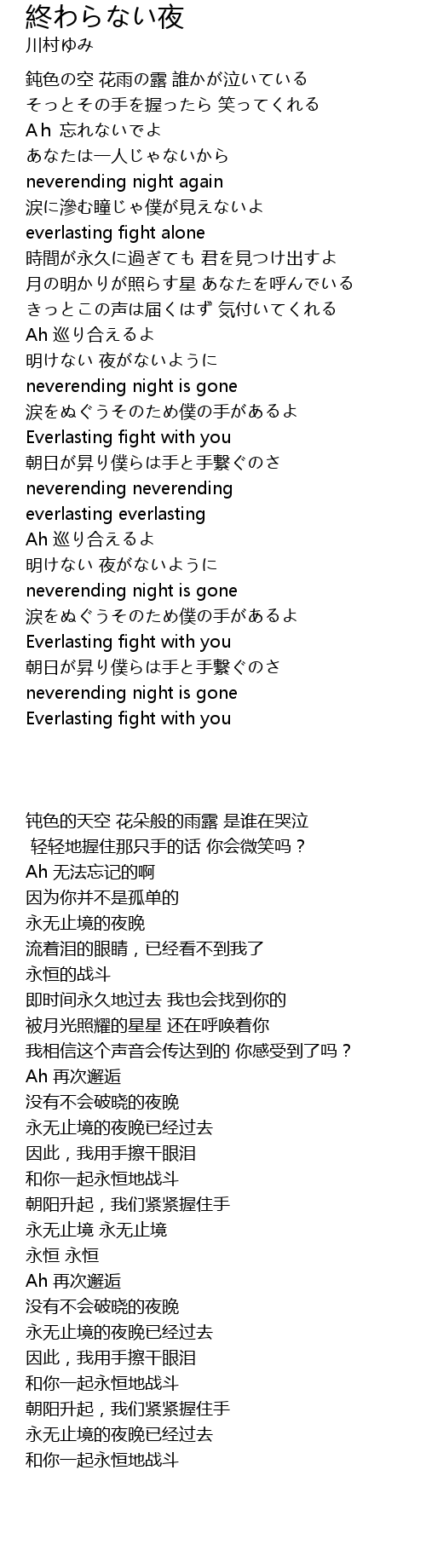 | [00:54.990] | 時間が永久に過ぎても 君を見つけ出すよ |