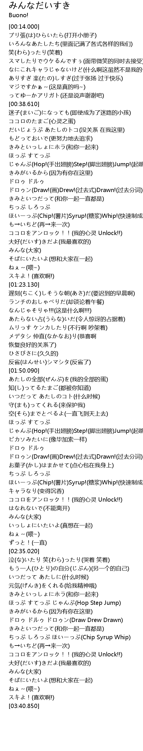 | [01:14.580] | みんな(大家) |