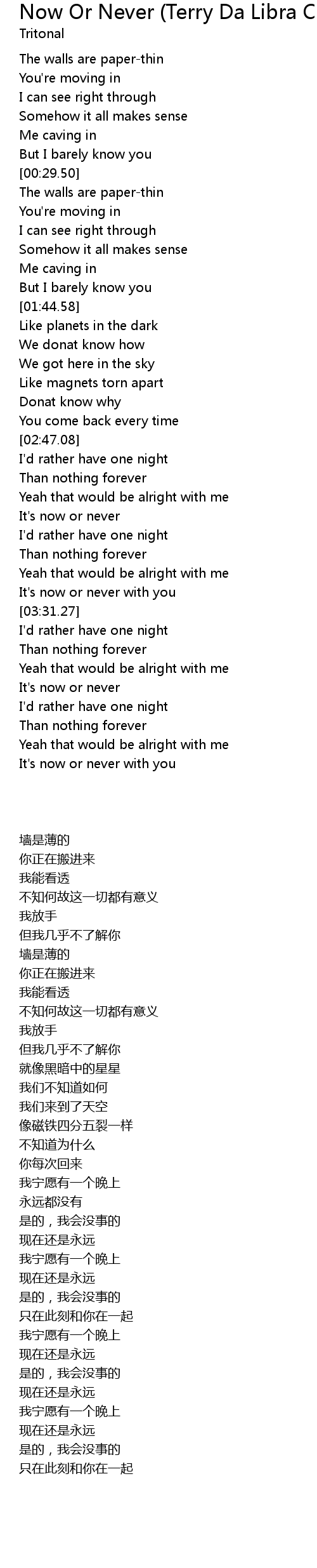 Now Or Never (Terry Da Libra Chill Out Mix) Lyrics
