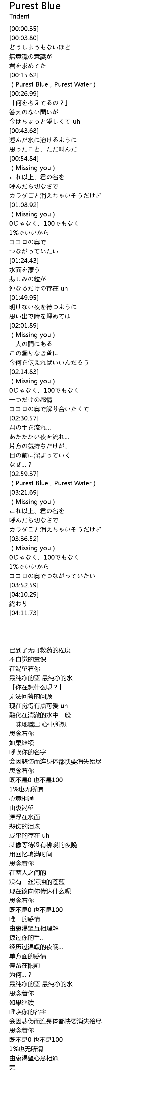 | [03:11.54] | (Purest Blue,Purest Water) |