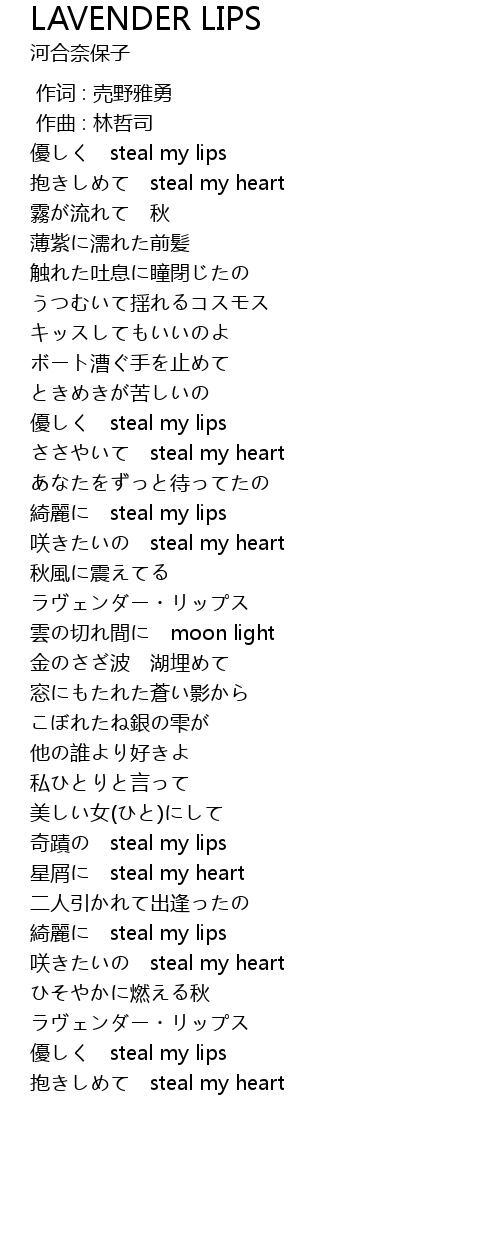 | [00:47.556] | 薄紫に濡れた前髪 |