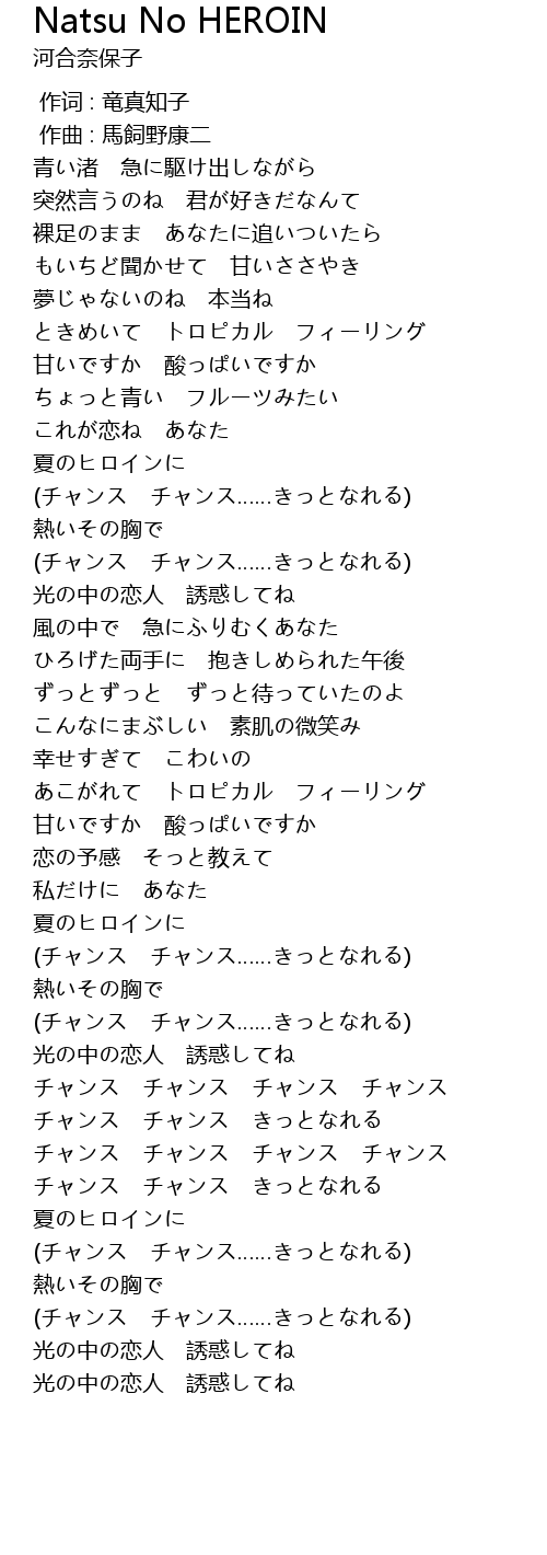 | [02:20.343] | あこがれて トロピカル フィーリング |