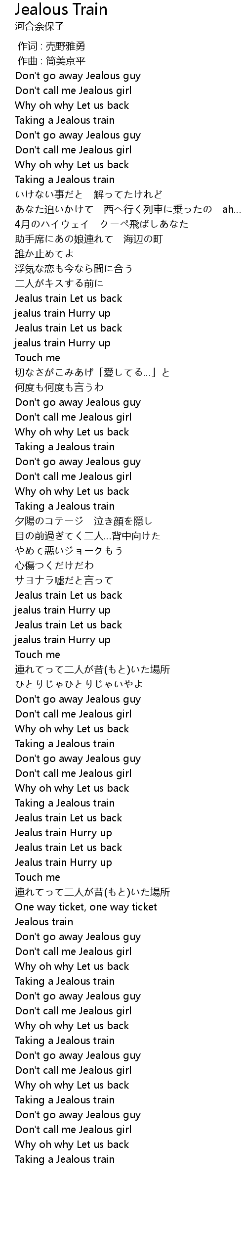| [02:33.352] | jealus train Hurry up |