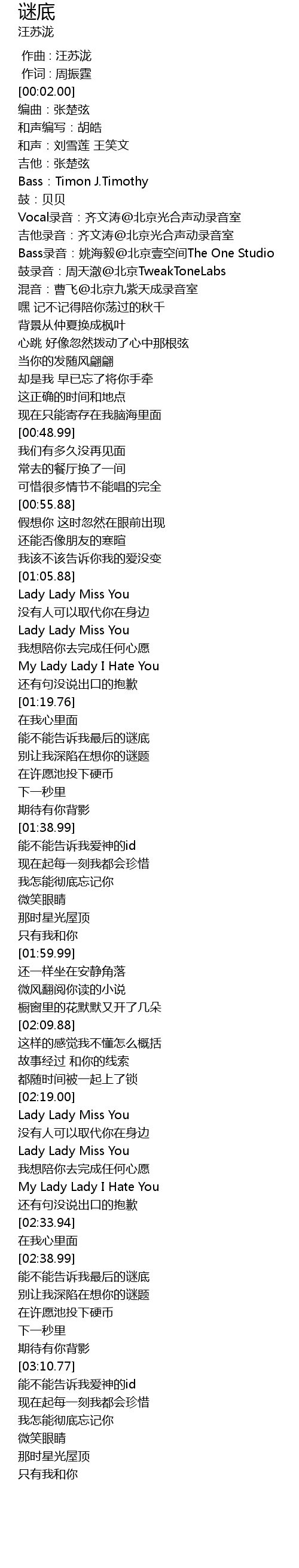 | [02:25.49] | Lady Lady Miss You |
