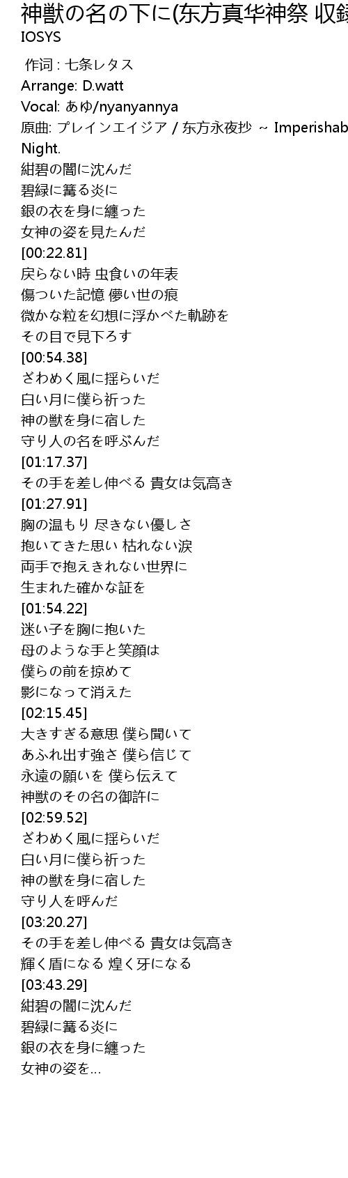 | [00:00.330] | 原曲: プレインエイジア / 东方永夜抄 ~ Imperishable Night. |