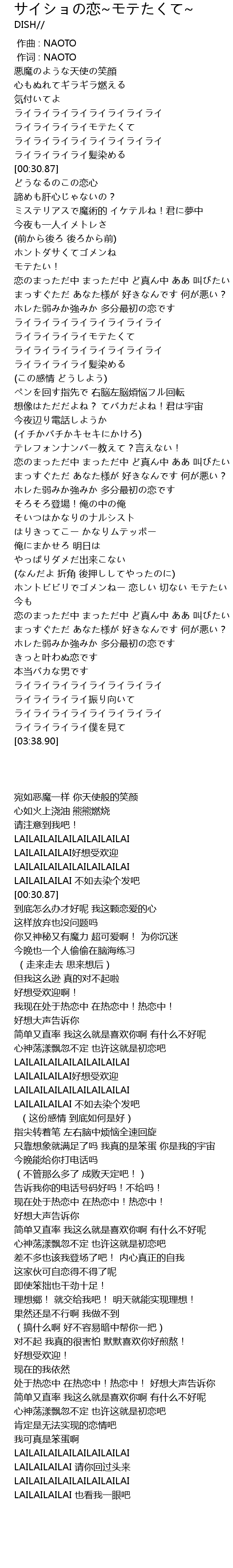 | [02:47.21] | ホントビビリでゴメンねー 恋しい 切ない モテたい |