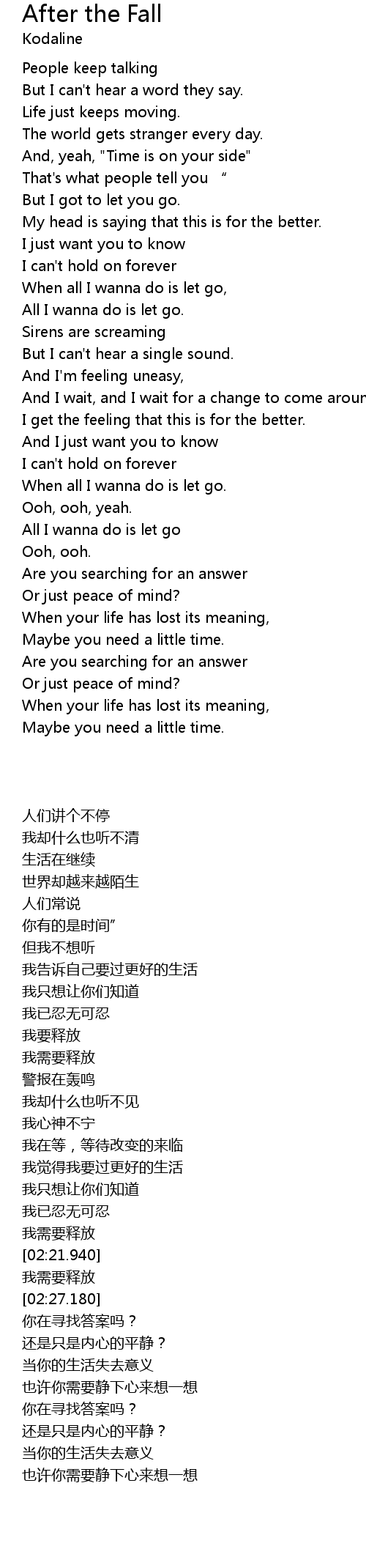 | [02:15.770] | When all I wanna do is let go. |