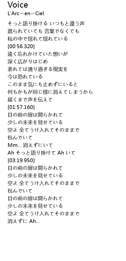 | [03:08.800] | Ah そっと語り掛けて Ah いて |