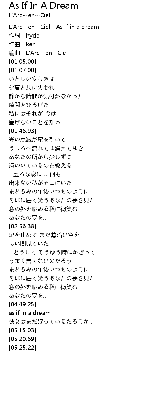 | [00:00.00] | L' Arc en Ciel As if in a dream |