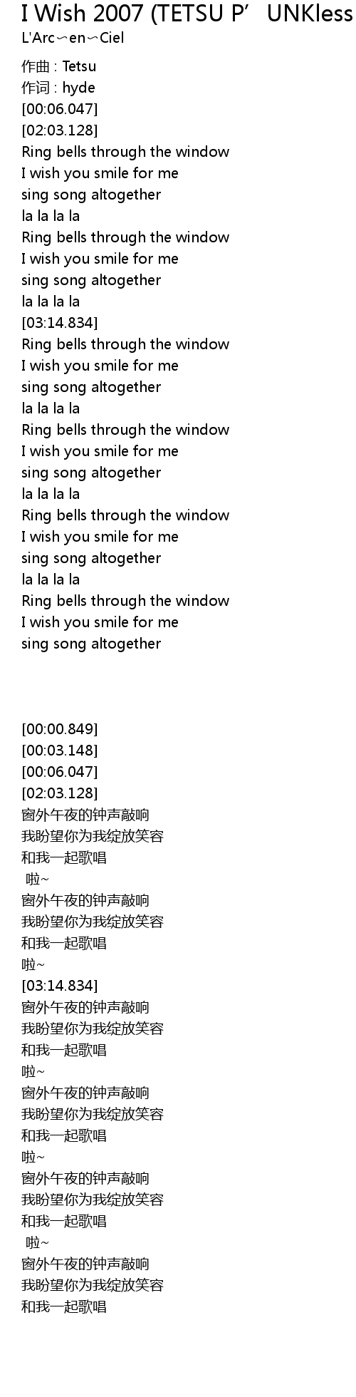 | Song | I Wish 2007 (TETSU P’UNKless version) |