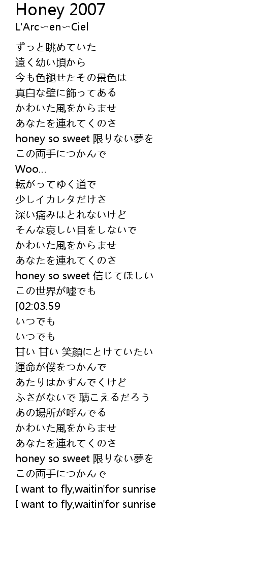 | [02:08.34][02:03.59] | I want to fly, waitin for sunrise |