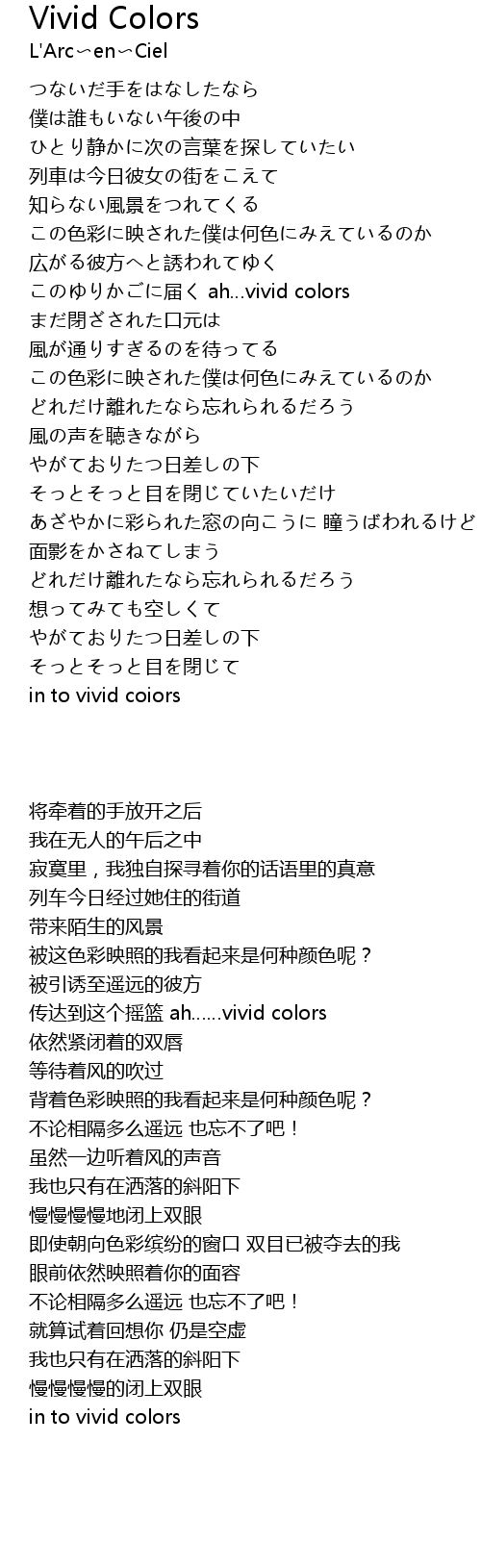 | [01:22.15] | このゆりかごに届く ah…vivid colors |