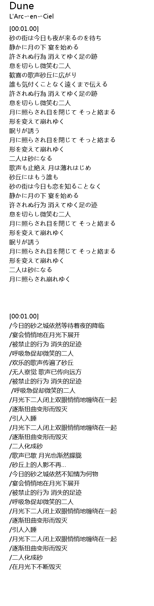 | [01:20.85] | 歓喜の歌声砂丘に広がり |