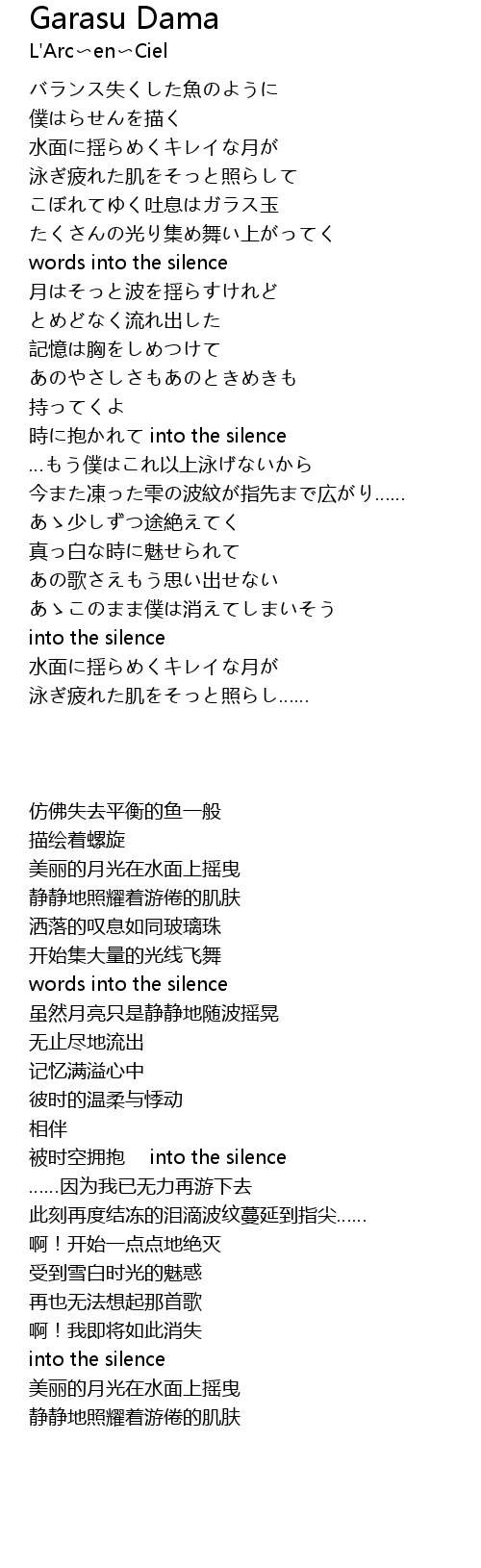 | [02:52.48] | 今また凍った雫の波紋が指先まで広がり…… |