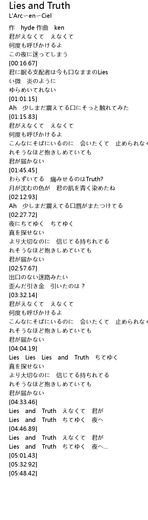 | [04:55.53] | Lies and Truth ちてゆく 夜へ... |
