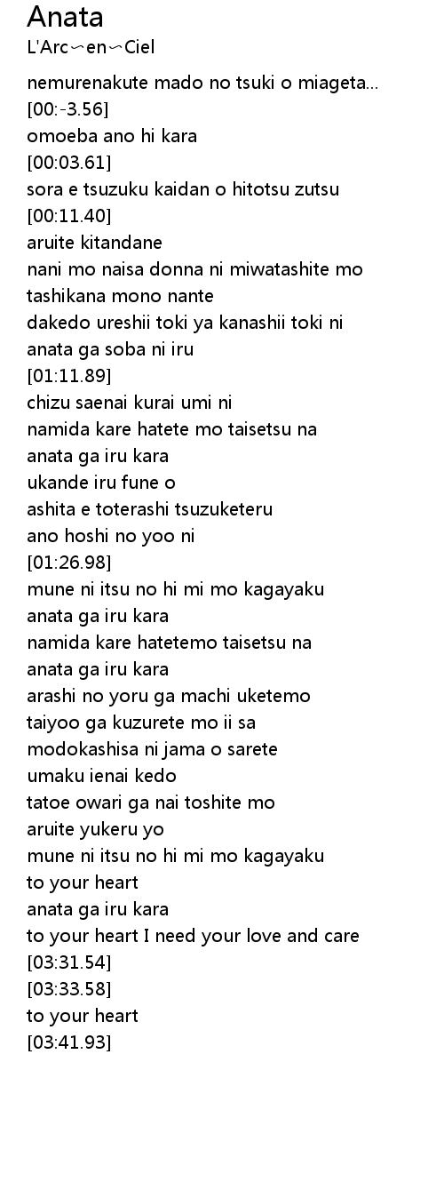 [00:06.70] sora e tsuzuku kaidan o hitotsu zutsu