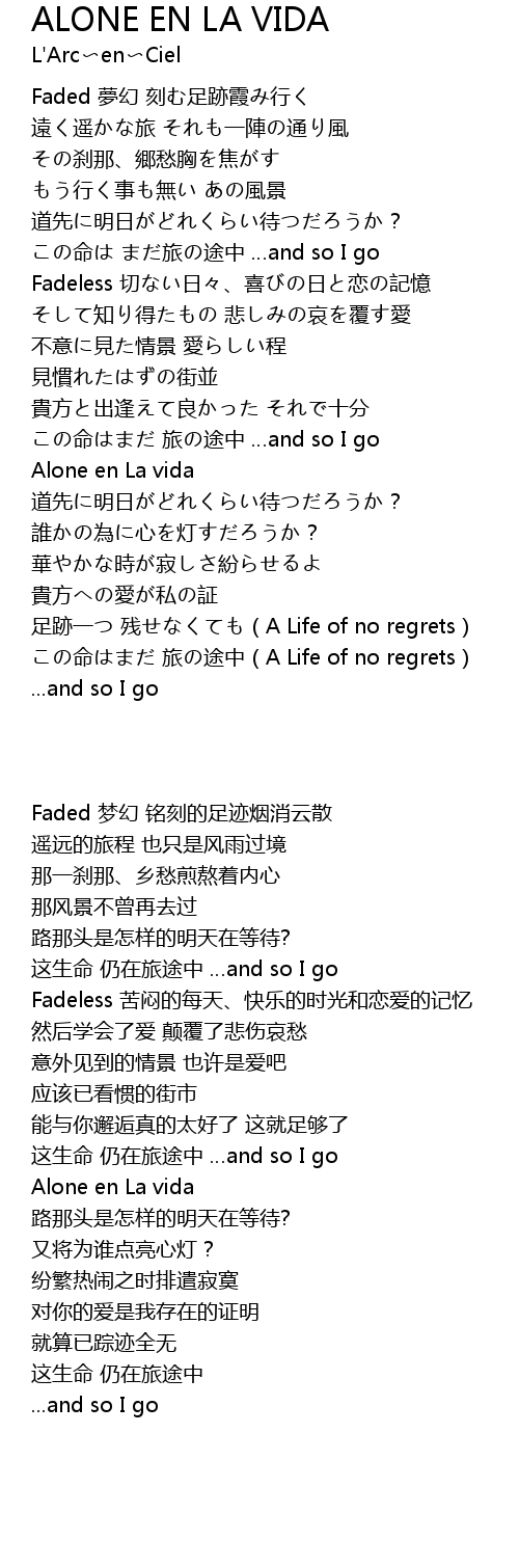 | [00:19.30] | Faded 夢幻 刻む足跡霞み行く |