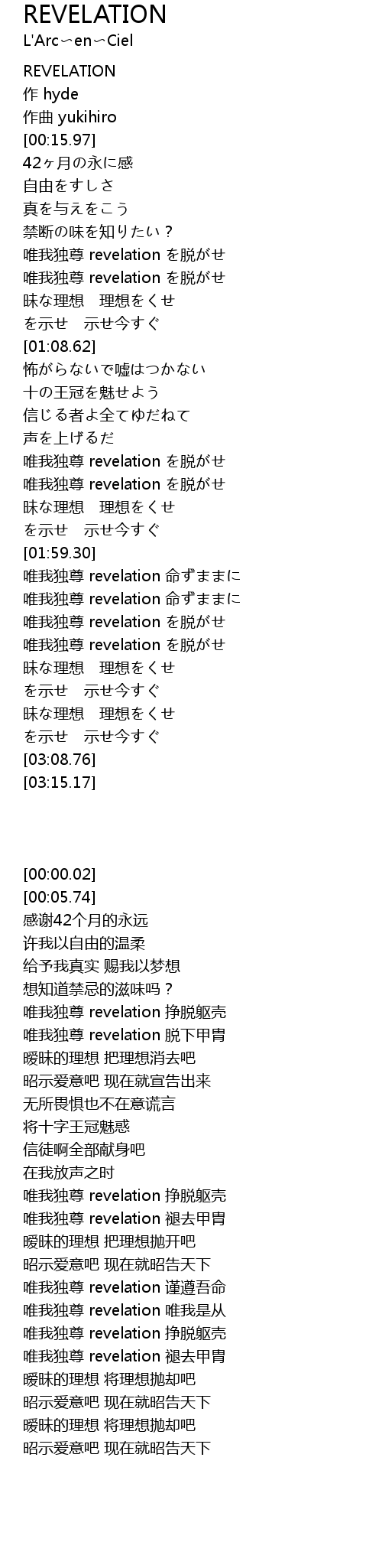 | [00:42.12] | 唯我独尊 revelation を脱がせ |