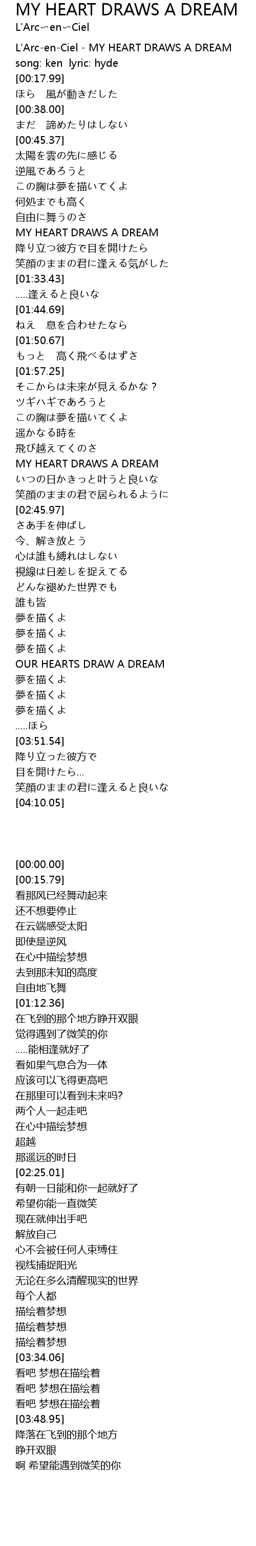| [00:00.00] | L' ArcenCiel MY HEART DRAWS A DREAM |