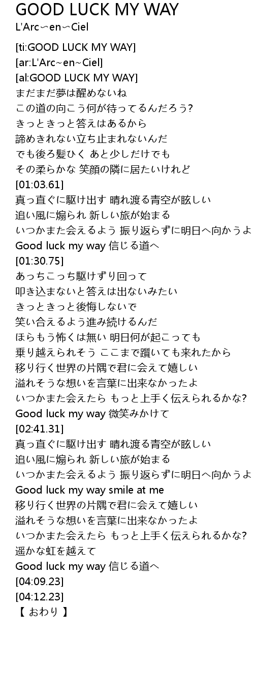 | [02:35.54] | Good luck my way 微笑みかけて |