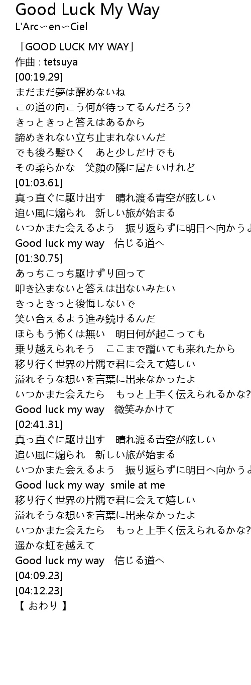 | [00:01.29] | GOOD LUCK MY WAY |