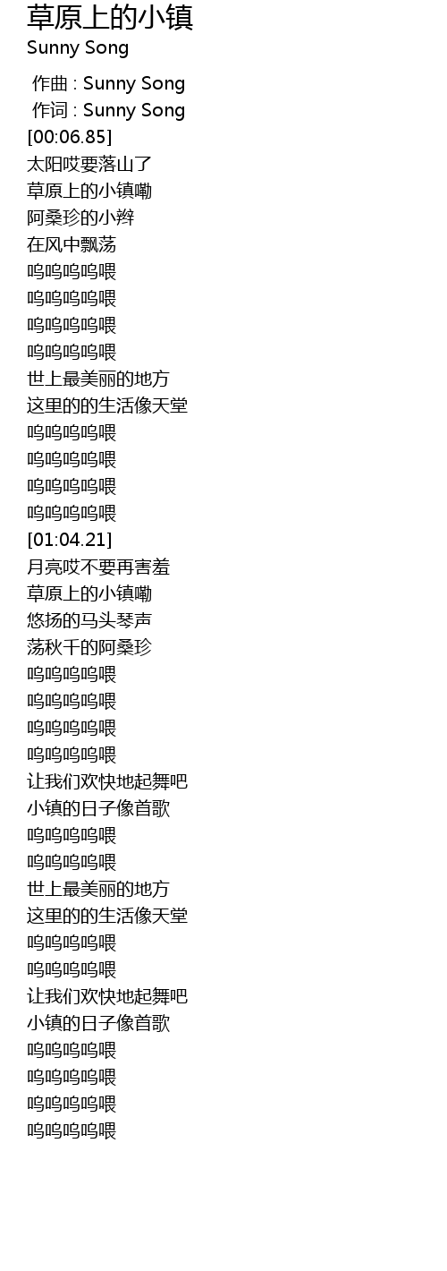 | [01:23.76] | cǎo yuán shàng de xiǎo zhèn lei |