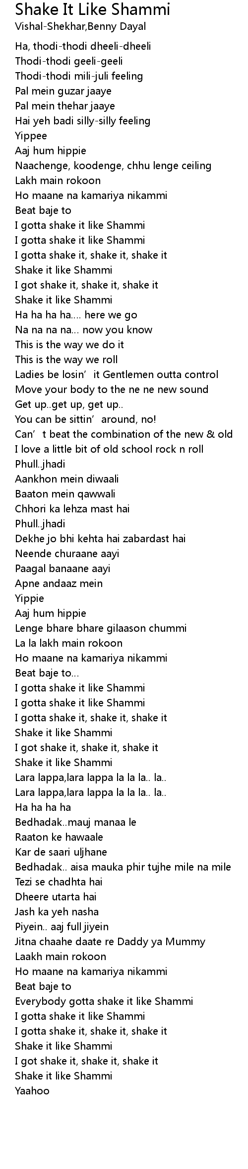 | [03:05.26] | Everybody gotta shake it like Shammi |