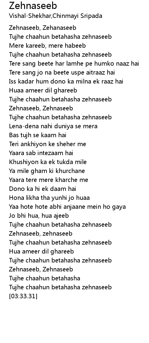 Zehnaseeb, zehnaseeb |