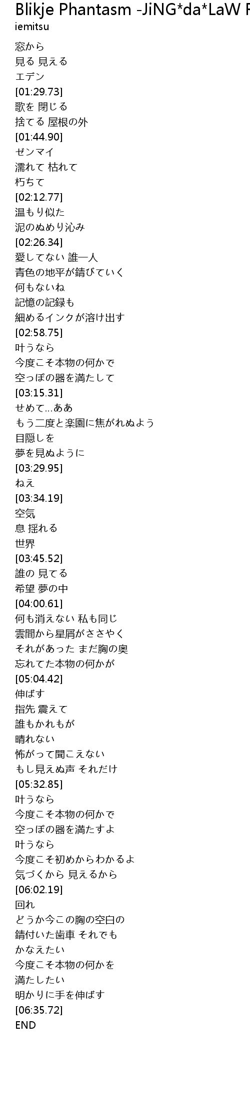 | [03:19.68] | もう二度と楽園に焦がれぬよう |