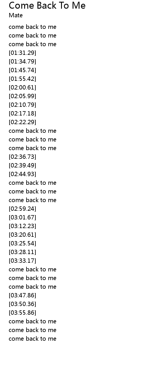 - Come Back To Me