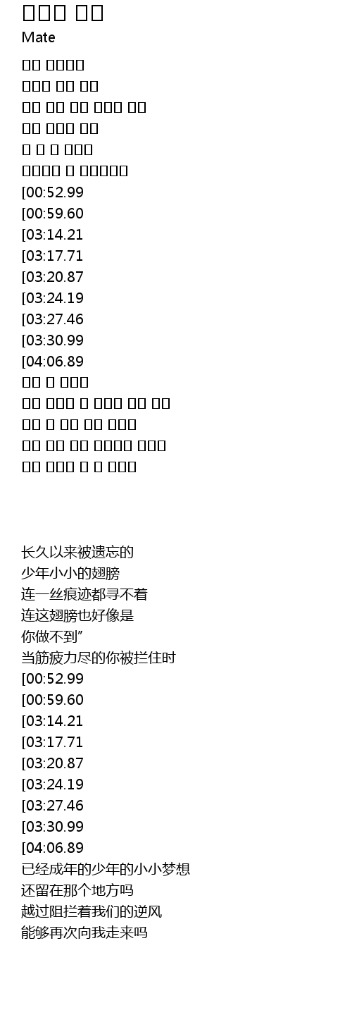 | [00:29.37] | 소년의 작은 날개 |