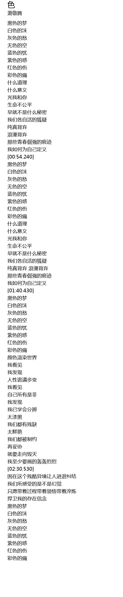 | [01:50.240] | 无色的空 |