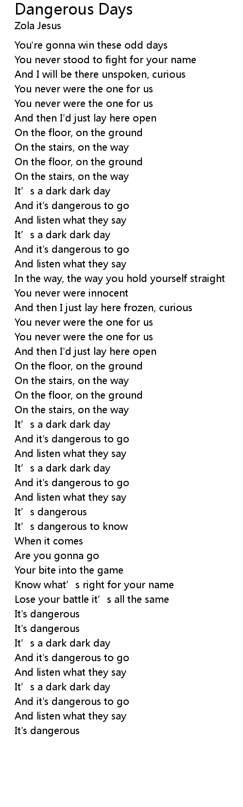 | Song | Dangerous Days |