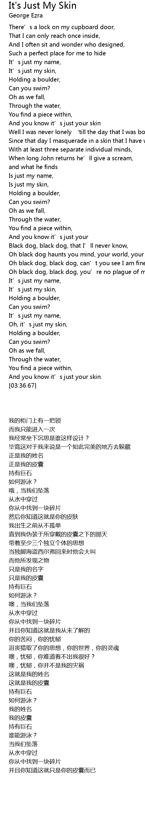 | [02:38.43] | Oh black dog, black dog, can’t you see I am fine? |