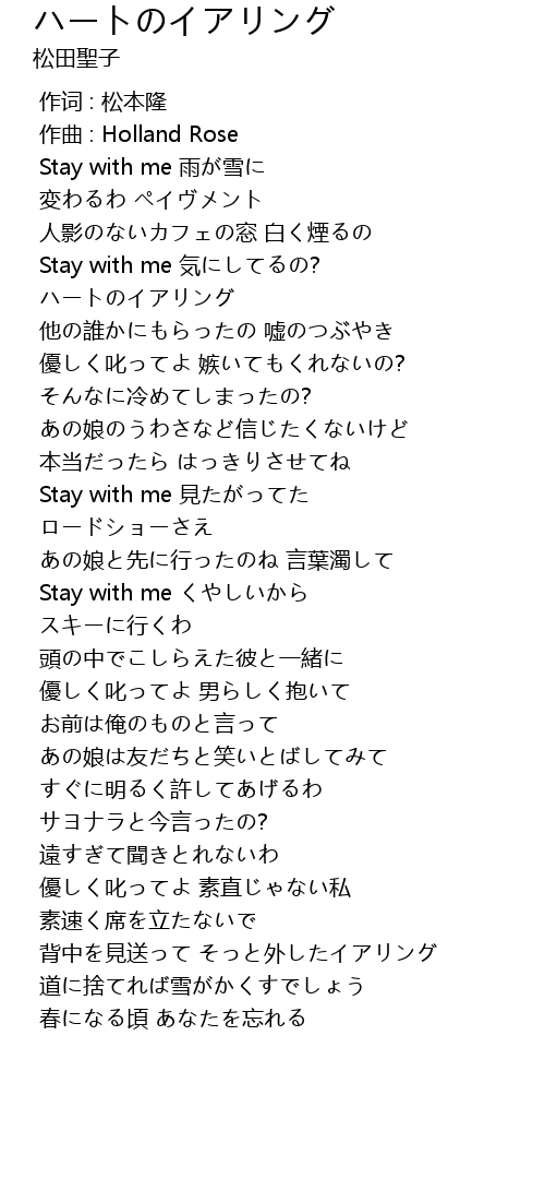 | [03:21.983] | 背中を見送って そっと外したイアリング |