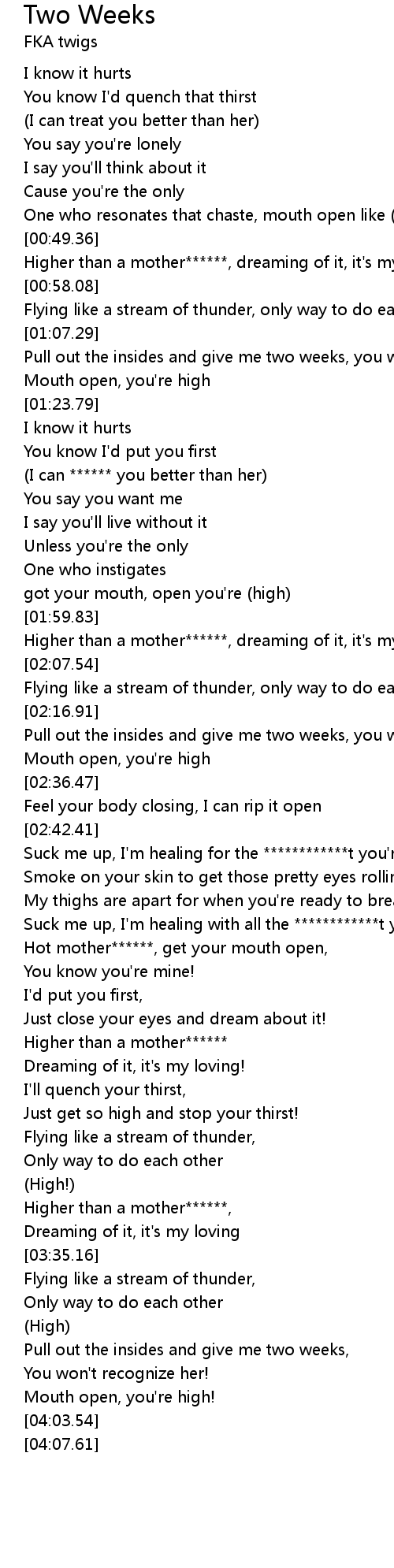 | [03:47.58] | Pull out the insides and give me two weeks, |
