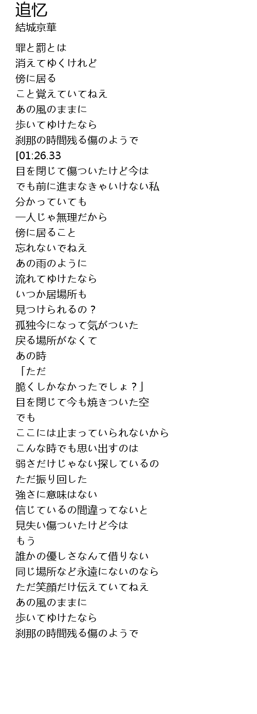 | [00:48.76] | 刹那の時間残る傷のようで |