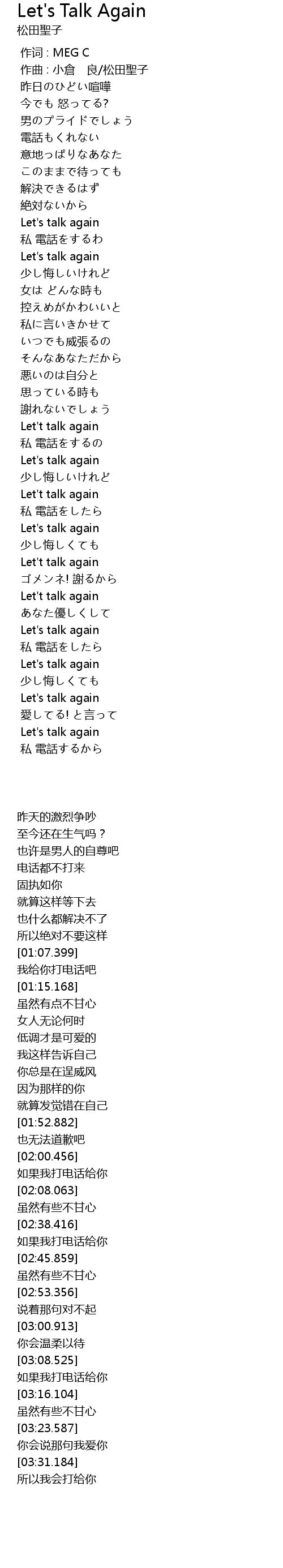 | [03:00.913] | Let' t talk again |