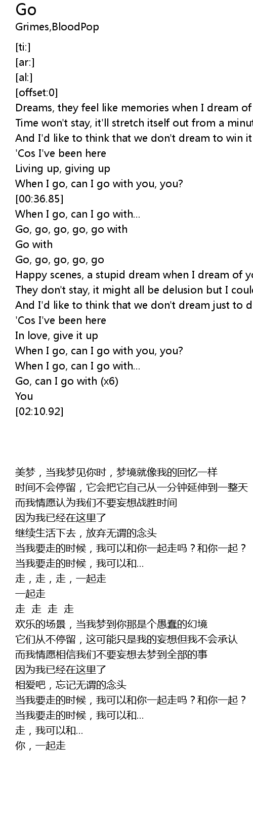 | [00:46.83] | When I go, can I go with... |