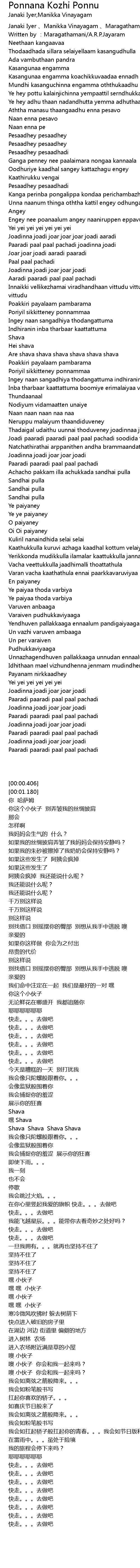 | [00:01.180] | Written by : Maragathamani A. R. P. Jayaram |