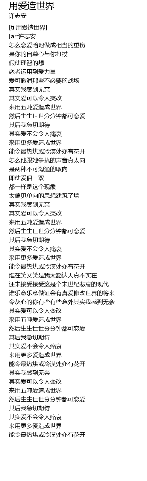 | [00:39.917] | lai yong wu dun ai zao cheng shi jie |