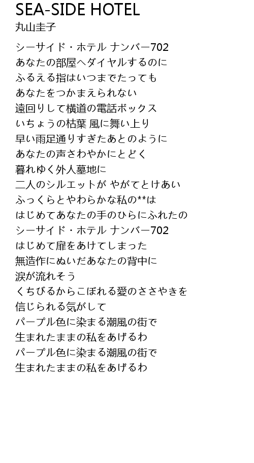 | Song | SEA-SIDE HOTEL |
