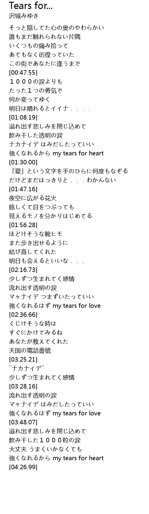 | [04:21.76] | 強くなれるから my tears for heart |