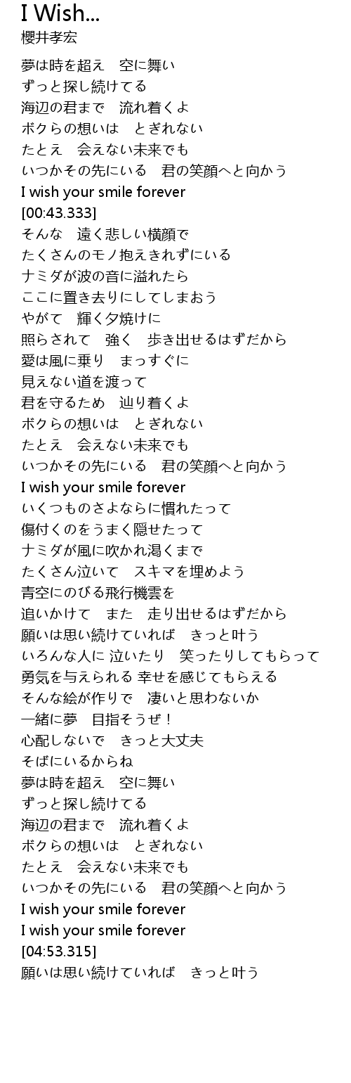 | [02:13.481] | I wish your smile forever |