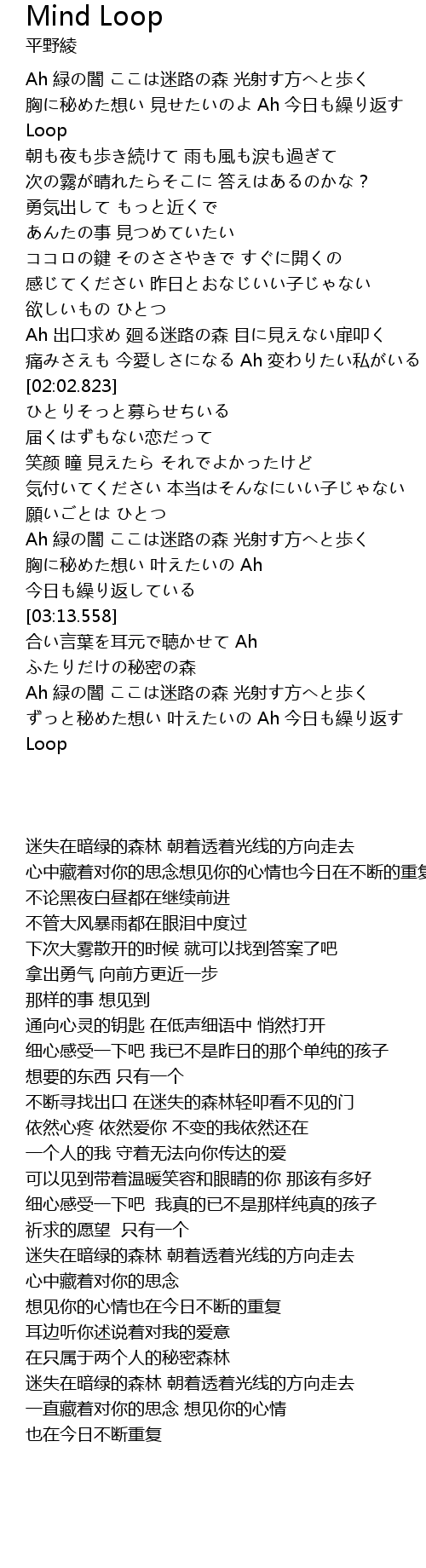 | [04:01.810] | ずっと秘めた想い 叶えたいの Ah 今日も繰り返す Loop |